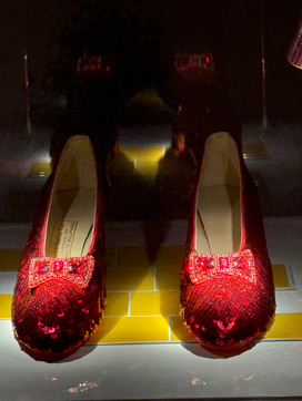 Using a standard modern red sequin on a pair of my slippers isn't something I was interested in, because when hit with light directly, you'll see flashes of orange. That's the same reason that MGM didn't use regular red sequins on their pairs. While the studio didn't have to resort to having a deep red sequin custom made, I did, as no modern sequin color was quite what I was looking for.
